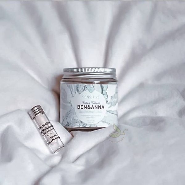 Dentífrico natural com espinheiro-marítimo (fortalece e protege), camomila e aloé vera ideal para dentes sensíveis. Limpa suavemente e ajuda a proteger de danos o esmalte dentário sensível.