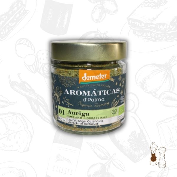 Mistura de Condimentos Biológica para Pratos Vegetarianos – Auriga, mistura de condimentos á base de Louro, Salva e Calêndula,